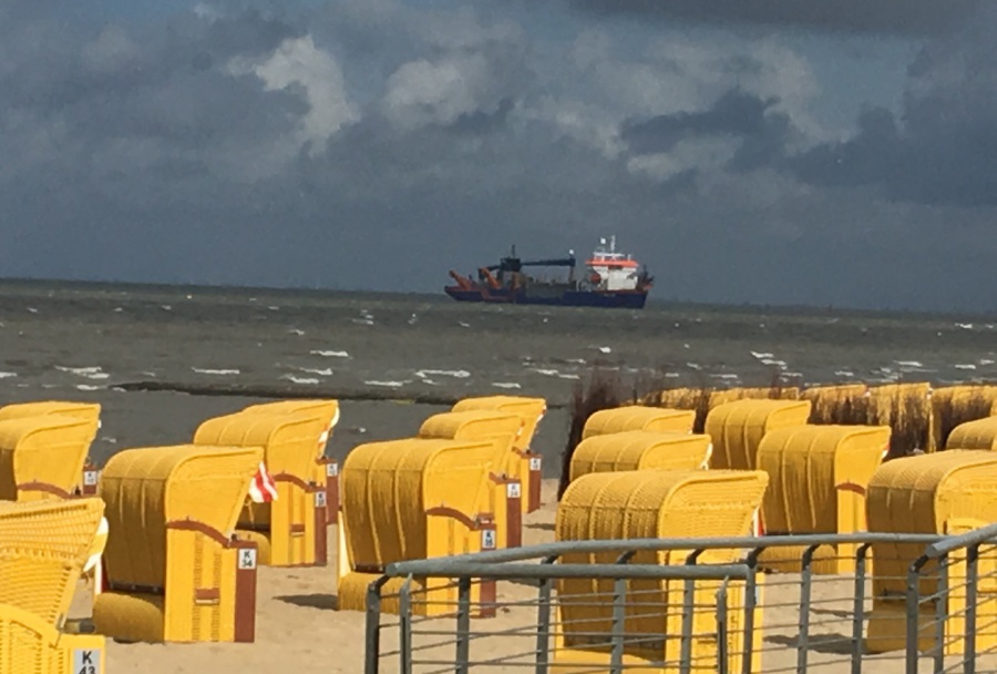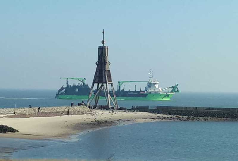 Und für die Zweifler: Die Saugbagger sind nicht nur in der Elbe unterwegs, sondern waren vor kurzem auch intensiv in der Fahrrinne vor der Grimmershörnbucht den Meeresgrund am Absaugen. Das intensive