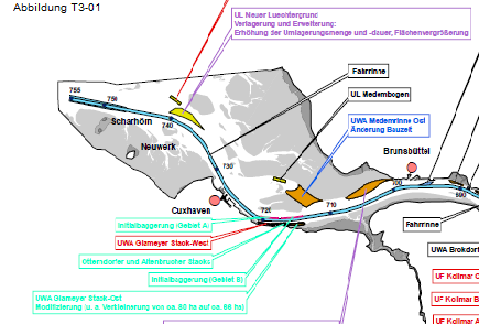 Größenordnung von 1 Million Kubikmeter pro Jahr vor Cuxhaven entsorgt werden und das mit Einvernehmen Niedersachsens. Das Baggergut wird in der Auswirkungsprognose der Bundesanstalt für Gewässerkunde