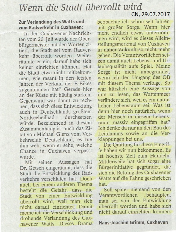 CN, 29. Juli 2017: "Wenn die Stadt überrollt wird" Hans-Joachim Grimm