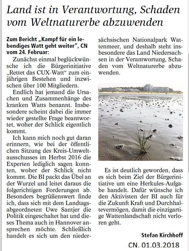 CN, 01.03.2018: "Land ist in Verantwortung, Schaden vom Weltnaturerbe abzuwenden" von Stefan Kirchhoff
