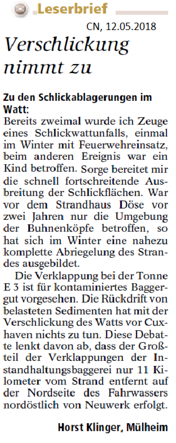 CN, 12.05.2018, Horst Klinger: "Verschlickung nimmt zu"