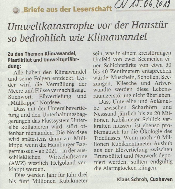 CN, 15. Juni 2019: "Umweltkatastrophe vor der Haustür so bedrohlich wie Klimawandel" von Klaus Schroh